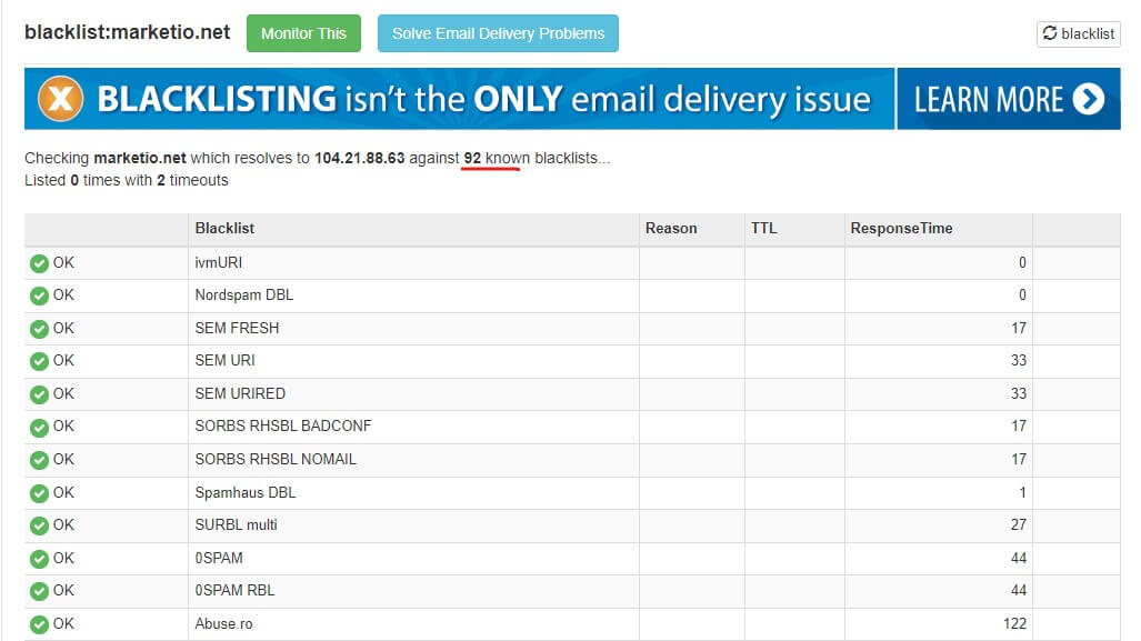 The next critical step is to ensure that your domain isn’t on any blacklists. Email providers use these lists to flag potential risks in advance, saving their resources from being expended on suspect domains.