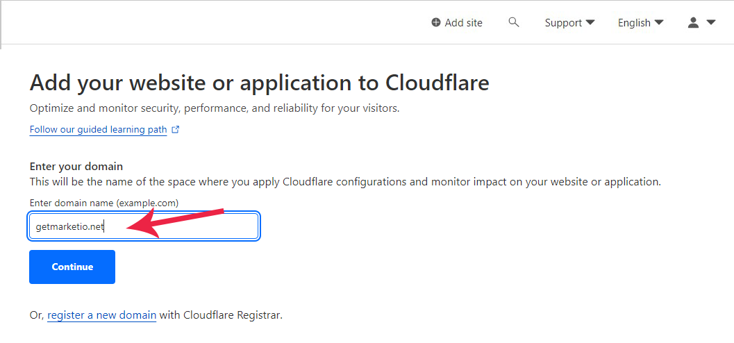 3. Now type your domain and click "Continue"