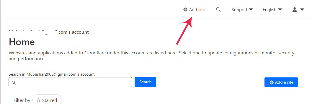 2. After logged in, you will see dashboard like this (below image). Now click "Add Site" (as shown by arrow)