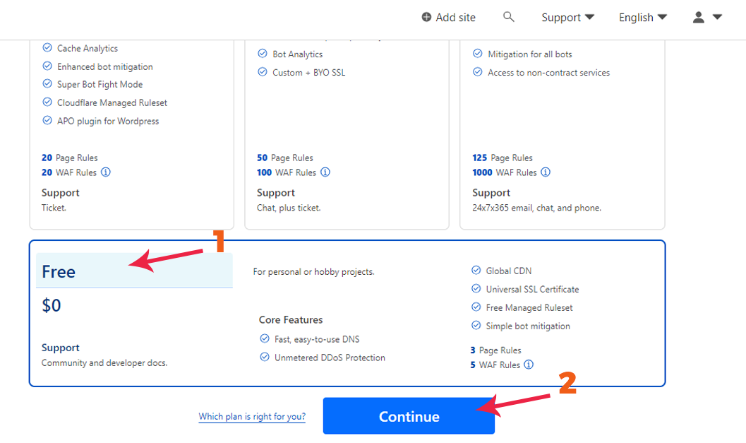 4. Now scroll down and click the "Free" option available and then click "Conitnue".