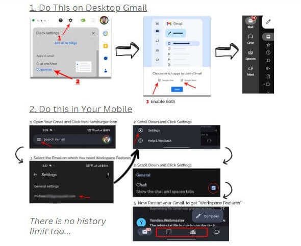 Just follow this steps to enable Google Meet & Chat. After you've enabled, you'll see Chat & Spaces section on your GMail Desktop and Mobile App.